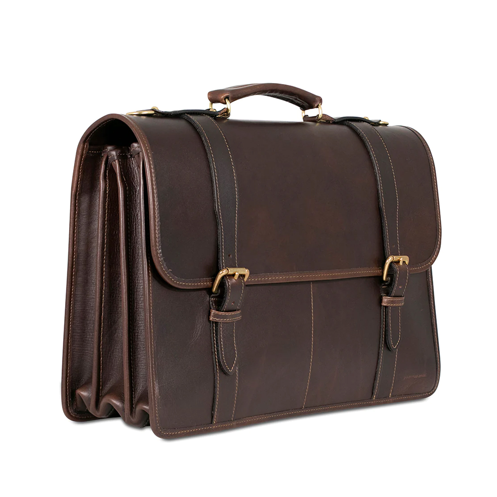 Classic Brown Leather Briefcase with Dual Strap Closure and Handle