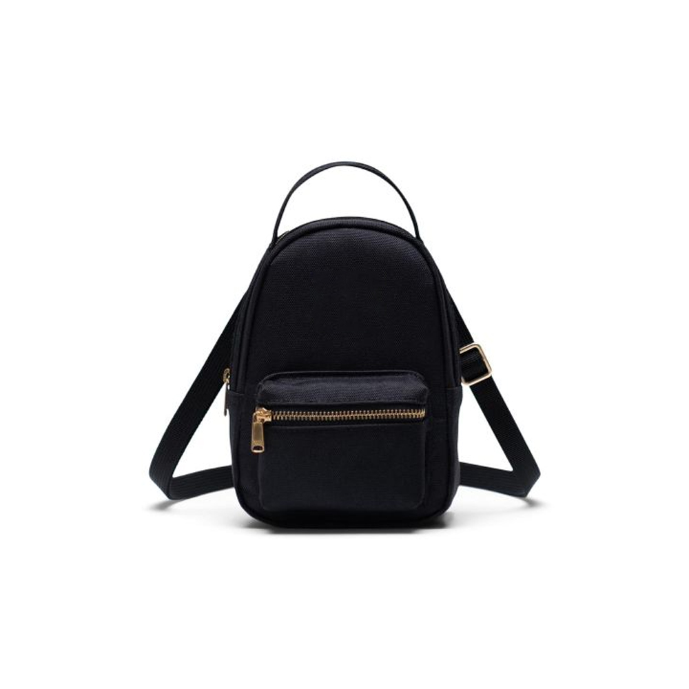 Compact Black Canvas Crossbody Bag with Front Zipper Pocket and Adjustable Strap