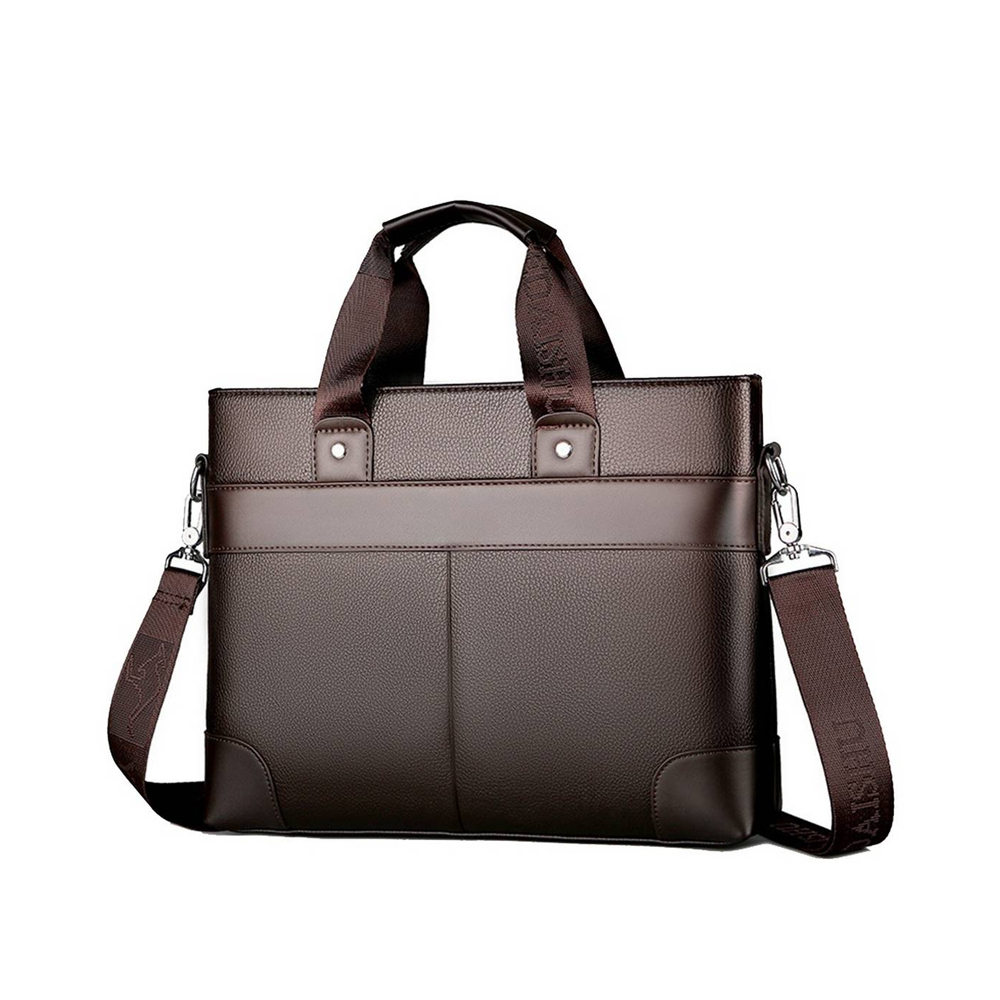 Premium Brown Leather Briefcase for Men with Adjustable Shoulder Strap