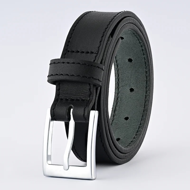 Simple Black Leather Belt with Sleek Silver Buckle for Men