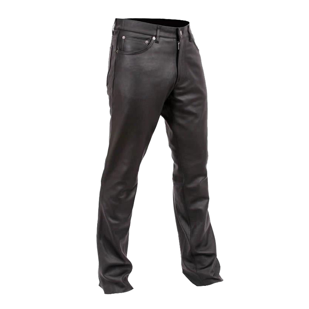 Premium Black Leather Pants for Men with Classic Fit and Zipper Detail