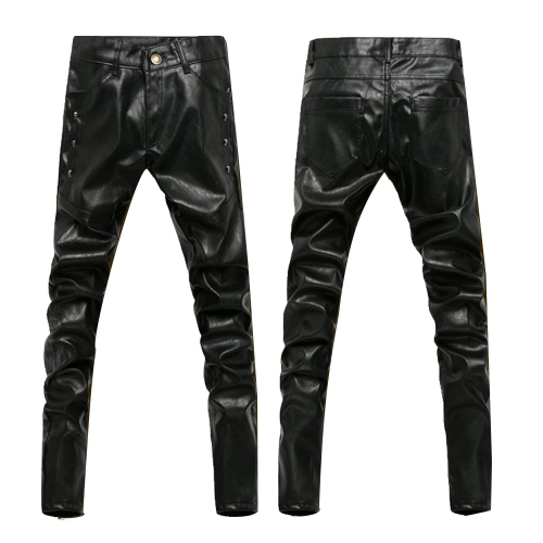 Stylish Black Leather Pants with Button Closure and Slim Fit Design