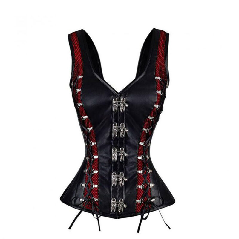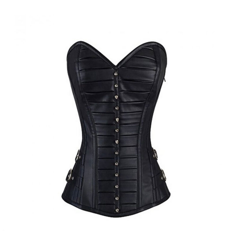 Material: This corset is made from premium faux leather, offering a durable, sleek exterior that provides an elegant shine. The soft, flexible fabric contours your body, ensuring a comfortable fit while maintaining a structured shape.